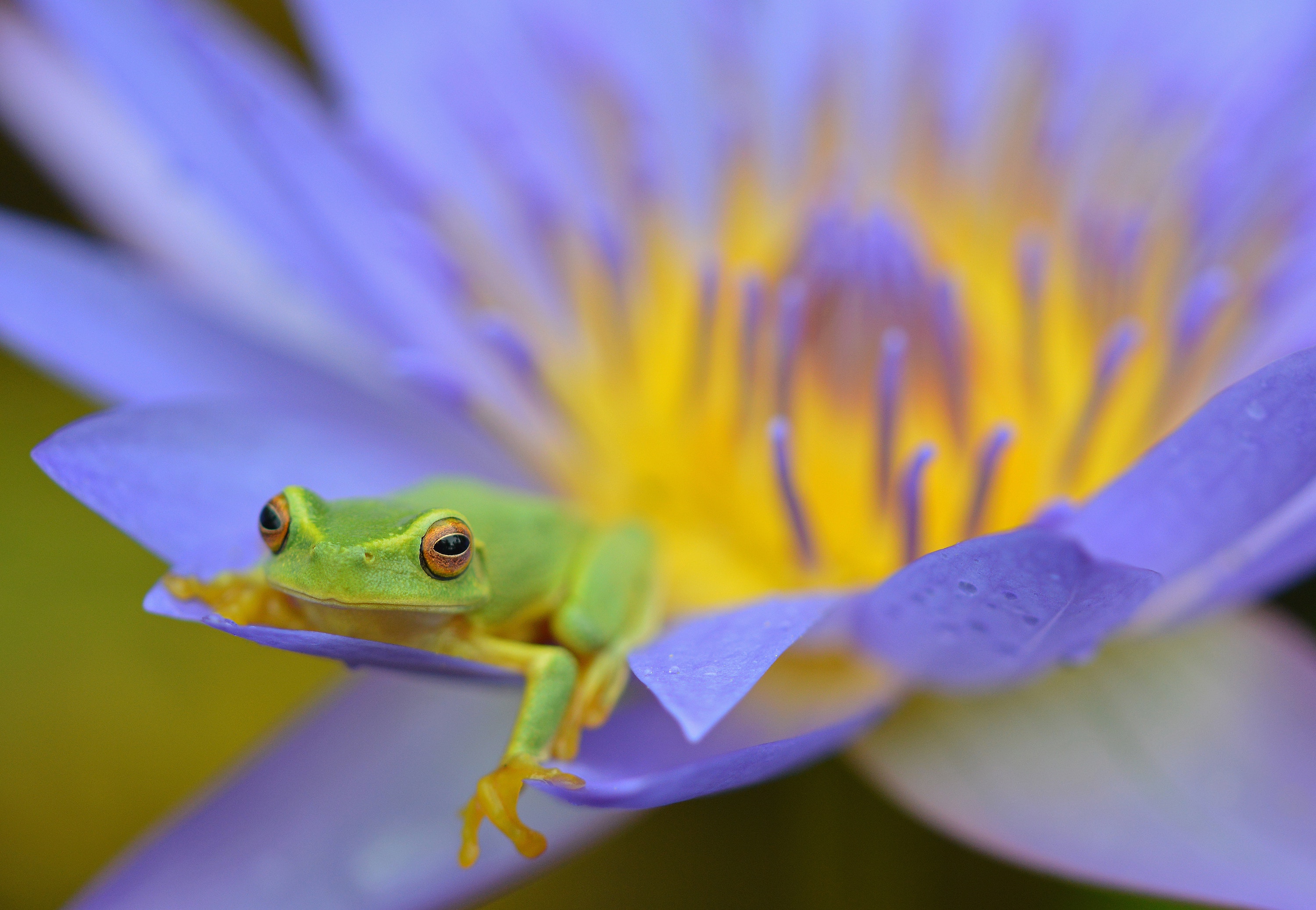 Dainty Tree Frog in a Water Lily Flower, Cairns, Australia Animals Nature Most Beautiful Picture March 5, 2018 Spread the love Dainty Tree Frog in a Water Lily Flower, Cairns, Australia. Photo: David Clode Spread the love