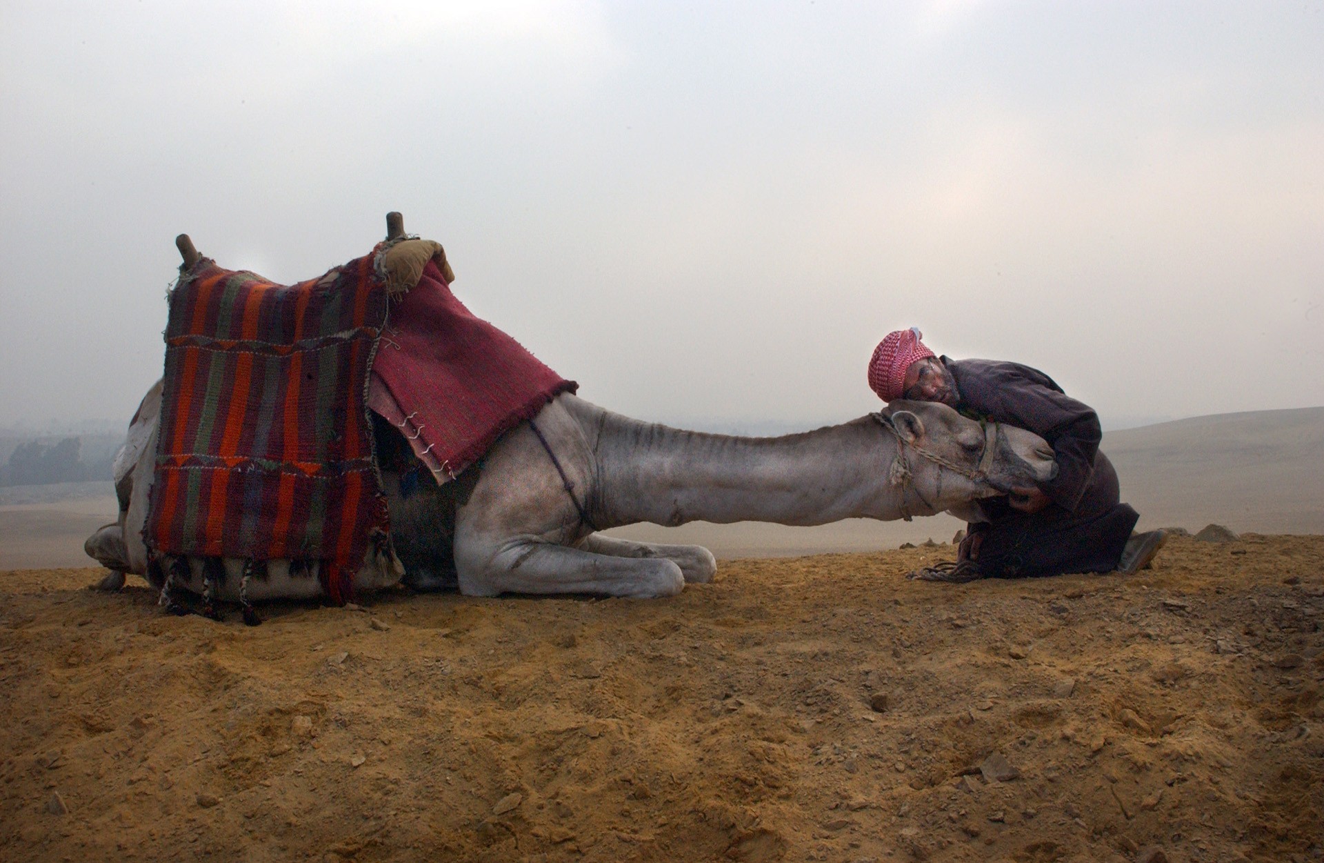 An Egyptian man in the desert with his camel in Cairo, Egypt, 2002. Photo: Ami Vitale